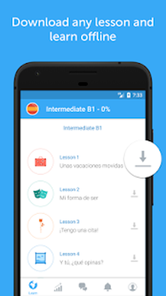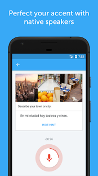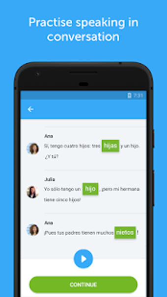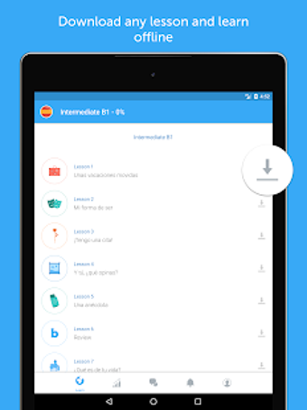 Nauka hiszpańskiego to przyjemne i łatwe doświadczenie dzięki Busuu. Aplikacja zawiera jednostki słownictwa i gramatyki, dialogi audio, gry językowe i interaktywne testy. Możesz ustawić spersonalizowany cel, aby upewnić się, że osiągasz swoje cele nauki. Aplikacja posiada również funkcję, w której rodzimi użytkownicy mogą pomóc ci doskonalić swoje umiejętności, przesyłając ćwiczenia praktyczne.